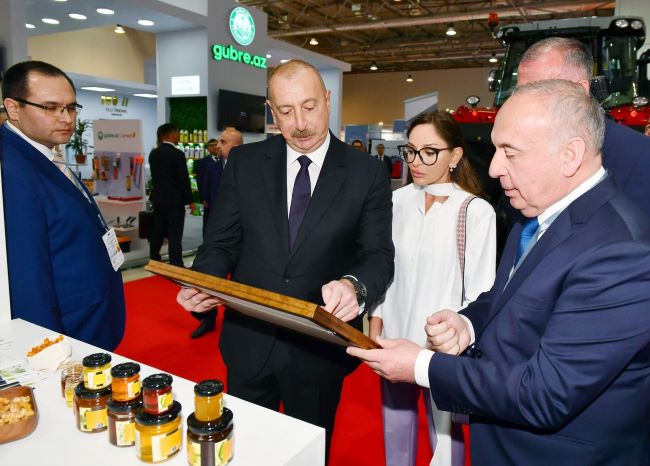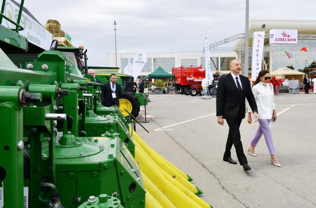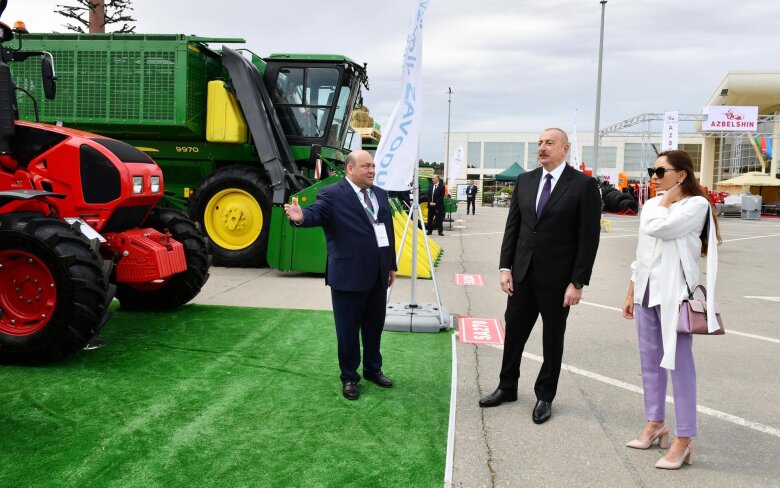 Dövlətimizin başçısı və birinci xanım sərgidə “Grow Group Azərbaycan”, “Maschio Gaspardo”, “New Holland”, “Rostselmaş”, “MySilo”, “Rauch Landmashchinen”, “SwissGrow”, “AfiMilk”, “Gowan”, “Can-Pa” şirkətlərinin, Çexiyanın, İtaliyanın, Belarusun, Gürcüstanın, ABŞ-ın və Niderlandın stendləri ilə tanış oldular. Stendlərdə ən müasir kənd təsərrüfatı texnikaları, əkin-biçin aqreqatları və kənd təsərrüfatı məhsulları təqdim olunur.