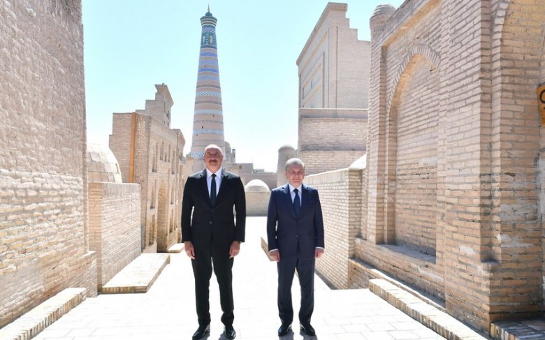 İlham Əliyev Özbəkistanın Xivə şəhərində “Nurullaboy” saray kompleksi ilə tanış olub