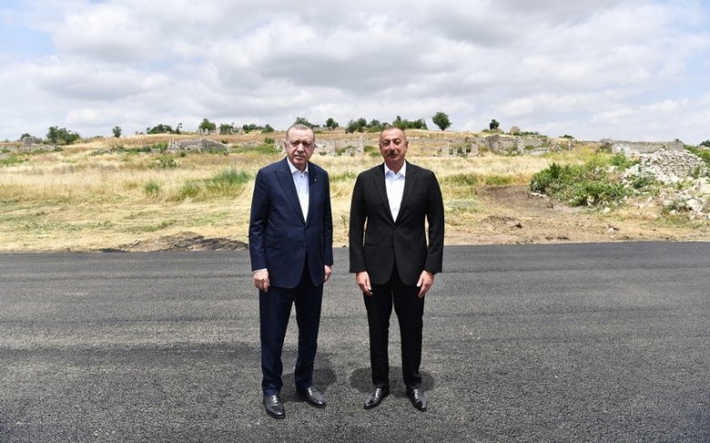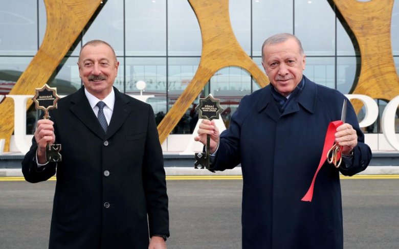 Füzuli Beynəlxalq Hava Limanının rəmzi açarı İlham Əliyev və Ərdoğana təqdim edilib