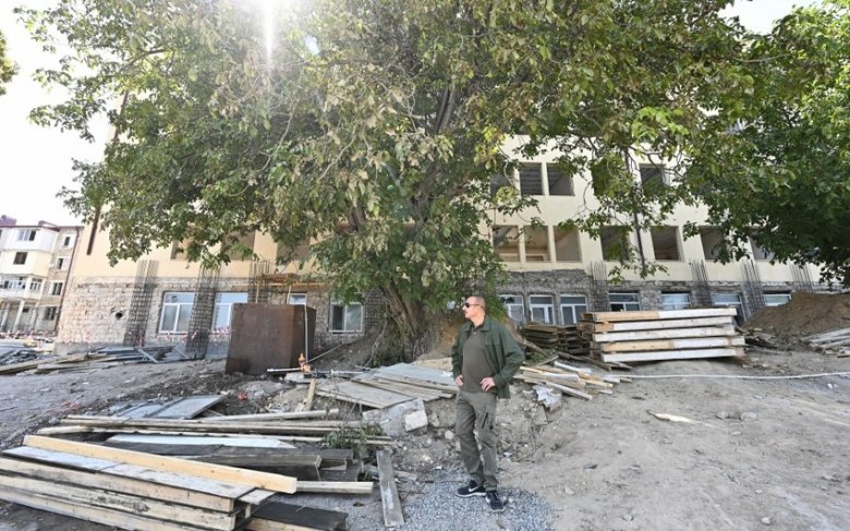İlham Əliyev xüsusi nümayəndəliyin inzibati binasında aparılan bərpa işləri ilə maraqlanıb