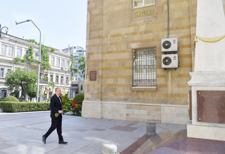 Prezident Azərbaycan Xalq Cümhuriyyətinin şərəfinə ucaldılmış abidəni ziyarət edib