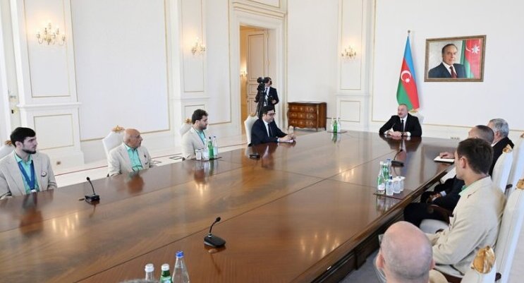 Prezident olmpiadada qalib gələn idmançılar və onların məşqçilərini mükafatlandırıb