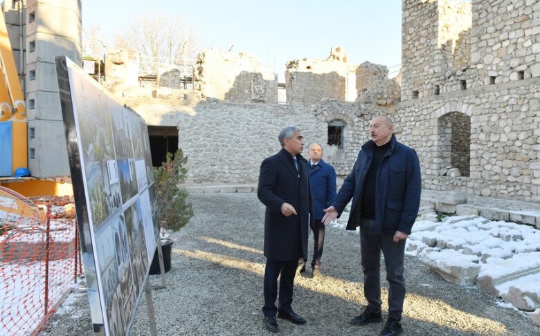 Prezident İlham Əliyev Şuşada bir sıra obyektlərdə tikinti və bərpa işləri ilə tanış olub