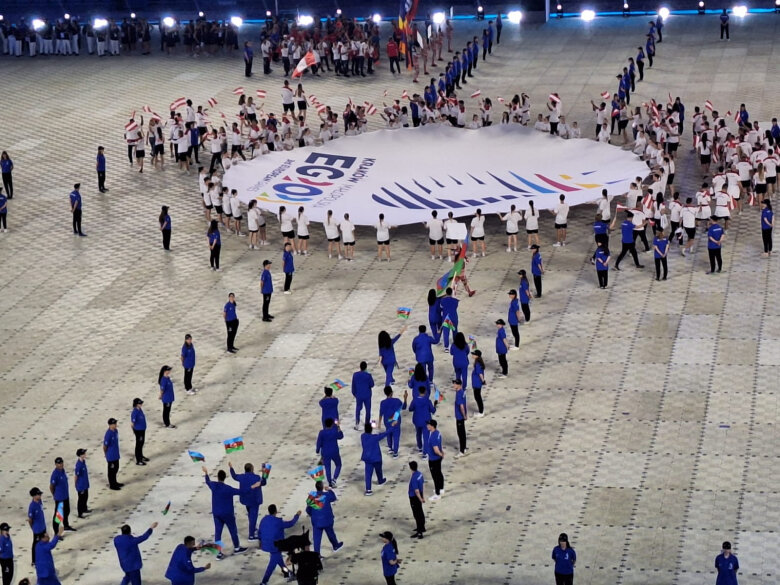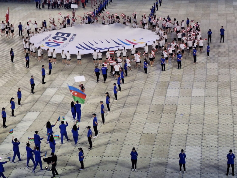 Bakı vaxtı ilə saat 22:30-da start götürən mərasimdə idmançıların paradı da olub. Azərbaycan millisi paraddan keçib. Bayrağımızı qılıncoynadan Barat Quliyev və oxatan Yaylagül Ramazanova daşıdığı halda, onu yığmamızın şef-de-missionu, Gənclər və İdman Nazirliyinin idman şöbəsinin müdiri Elnur Məmmədov, idmançılar və rəsmi şəxslər müşayiət ediblər. Yarışa gec qoşulacaqları üçün sonradan Polşaya yollanacaq, həmçinin yaxın müddətdə mübarizəyə qoşulacaq və digər şəhərlərdə gücünü yoxlayacaq atletlər tədbirdə iştirak etməyib. Azərbaycan millisi paraddan 6-cı keçib.