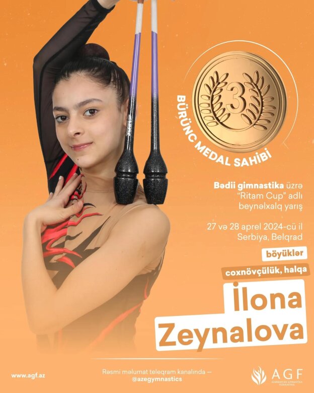 İlona Zeynalova isə yarışı iki mükafatla başa vurub. Ginnast çoxnövçülükdə və halqa ilə hərəkətlərdə bürünc medal qazanıb(Report).