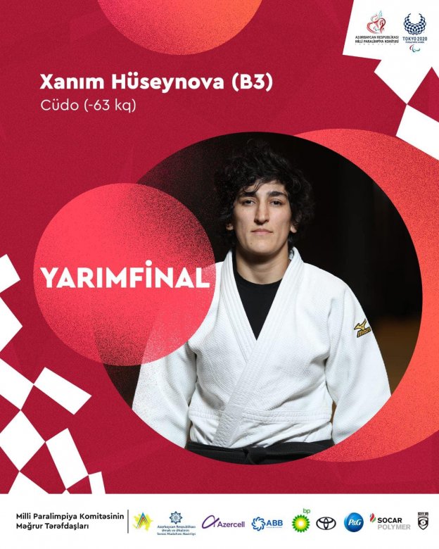 Tokio-2020 Yay Paralimpiya Oyunlarında qadınlar arasında 63 kq çəki dərəcəsində mübarizə aparan paracüdoçumuz Xanım Hüseynova yarımfinalda çinli rəqibi Yue Wang'a qalib gələrək finala vəsiqə qazanıb.