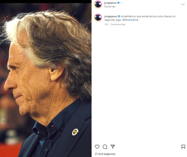 "Fənərbağça"nın baş məşqçisi Jorge Jesus UEFA Avropa Liqasının 1/8 final mərhələsində "Sevilya" ilə cavab qarşılaşması barədə paylaşım edib
