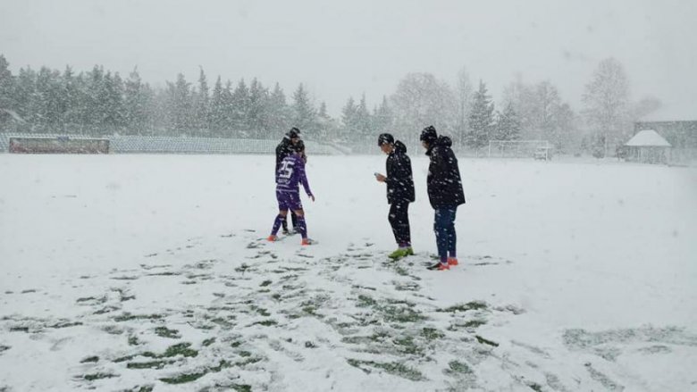 Futbol güclü qar səbəbindən yarımçıq dayandırılıb