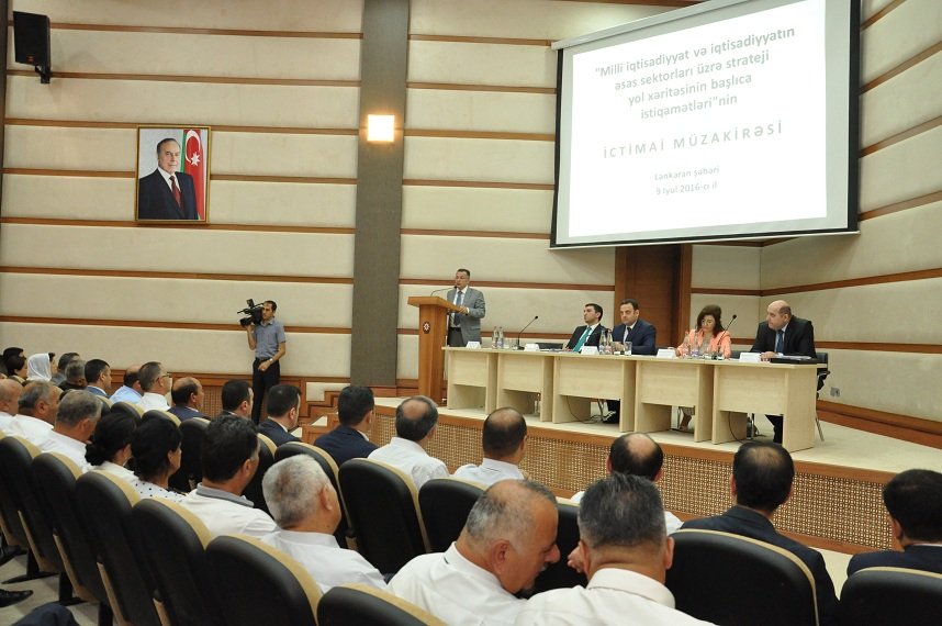 Azərbaycan Respublikası Prezidentinin İqtisadi İslahatlar üzrə Köməkçisi Xidməti və İqtisadi İslahatların Təhlili və Kommunikasiya Mərkəzi birlikdə "Milli iqtisadiyyat və iqtisadiyyatın əsas sektorları üzrə strateji yol xəritəsinin başlıca istiqamətləri"nin ictimai müzakirələrini bölgələrdə davam etdirirlər. Bu silsilədən növbəti tədbir Lənkəran şəhərində Lənkərən, Masallı, Yardımlı, Astara, Lerik və Cəlilabad rayonlarının ictimaiyyət nümayəndələrinin iştirakı ilə keçirilib.