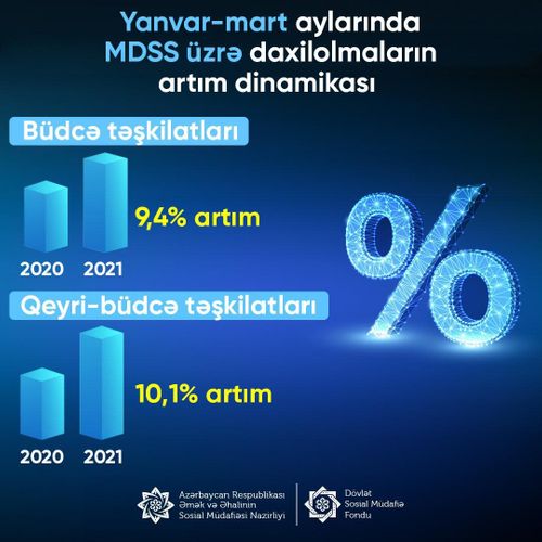 Dövlət Sosial Müdafiə Fondunun İctimaiyyətlə əlaqələr departamentinin məlumatına görə, ötən ilin analoji dövrü ilə müqayisədə büdcə təşkilatlarında 9,4 faiz, qeyri-büdcə təşkilatlarında isə 10,1 faiz artım qeydə alınıb.