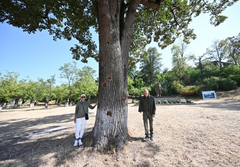 Dövlətimizin başçısı və birinci xanım heykəlin üzərindəki örtüyü götürdülər.