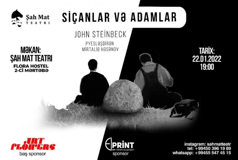 Yanvarın 22-də Müstəqil Şah Mat Teatrının səhnəsində Nobel mükafatlı Amerika yazıçısı John Steinbeckin “Adamlar və siçanlar” pyesi əsasında hazırlanmış “Siçanlar və adamlar” səhnə əsərinin premyerası olacaq.
