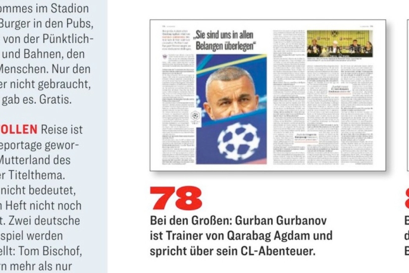“Qarabağ” futbol klubunun baş məşqçisi Qurban Qurbanov dünyanın ən məşhur idman nəşrlərindən biri olan “Kicker” jurnalına müsahibə verib. Almaniya nəşri üçün müsahibəni azərbaycanlı jurnalist Rasim Mövsümov götürüb.