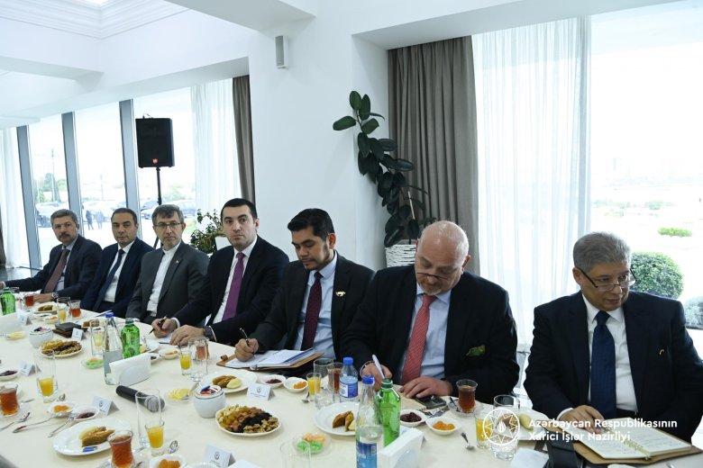 Azərbaycanın xarici işlər naziri Ceyhun Bayramov və Azərbaycan Prezidentinin köməkçisi, Azərbaycan Respublikası Prezidentinin Administrasiyasının Xarici siyasət məsələləri şöbəsinin müdiri Hikmət Hacıyev İslam dövlətlərinin Azərbaycanda akkreditə olunmuş səfirləri ilə görüşüblər.
