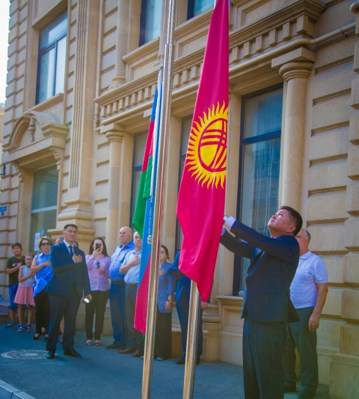 Qırğız Respublikasının müstəqilliyinin 30 illiyi münasibətilə bu ölkənin Azərbaycandakı səfirliyində 2 ölkənin milli bayraqlarının qaldırılması mərasimi keçirilib.
