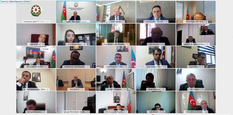 Bu gün Azərbaycanın xarici işlər naziri Ceyhun Bayramovun sədrliyi və nazir müavinləri, xüsusi tapşırıqlar üzrə səfirlər, XİN-in aidiyyəti struktur bölmələrinin və diplomatik nümayəndəliklərimizin rəhbərlərinin iştirakı ilə videokonfrans formatında müşavirə keçirilib.