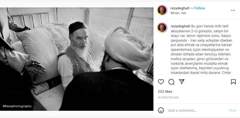 Reyting.az xəbər verir ki, bu sözlər məşhur güney azərbaycanlı fotoqraf Reza Deqatinin instaqramdakı paylaşımında qeyd ounub.