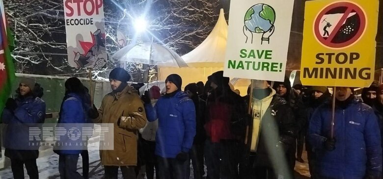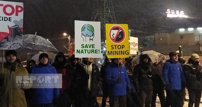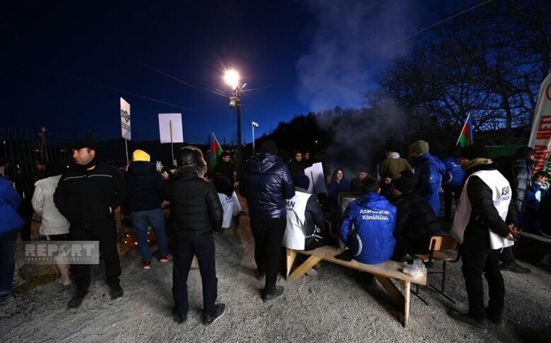Hava şəraitinin soyuq olmasına baxmayaraq Azərbaycanın Qarabağ iqtisadi rayonunda faydalı qazıntı yataqlarının qanunsuz istismarına qarşı Xankəndi-Laçın yolunda keçirilən etiraz aksiyası gecə saatlarında da davam edir.