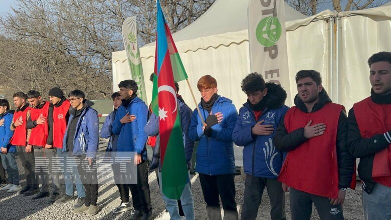 Ekofəallar və gənc könüllülər “Azərbaycan oyaqdır, sərvətinə dayaqdır!”, “Azərbaycan vahiddir, sərvətinə sahibdir!”, “Ekoloji cinayətə son!”, “Stop ekoterror!”, “Берегите природу!”, "Экоциду нет! Мониторингу да!" şüarlarını səsləndirirlər.