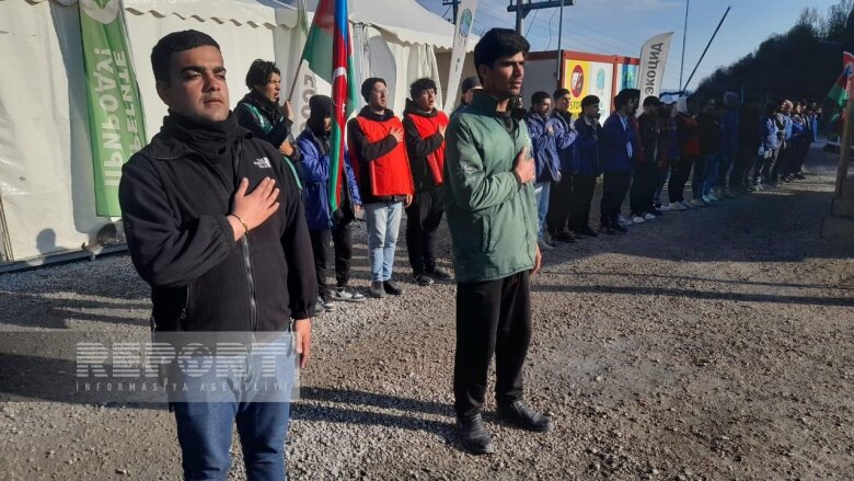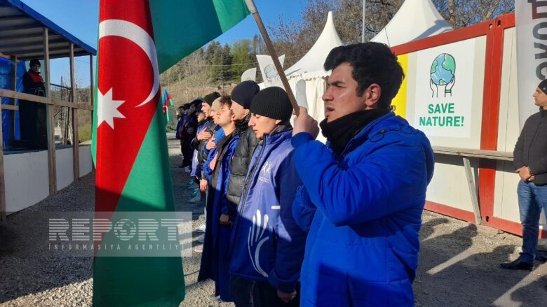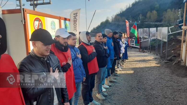 Ekofəallar və gənc könüllülər “Azərbaycan oyaqdır, sərvətinə dayaqdır!”, “Azərbaycan vahiddir, sərvətinə sahibdir!”, “Ekoloji cinayətə son!”, “Stop ekoterror!”, “Берегите природу!”, "Экоциду нет! Мониторингу да!" şüarlarını səsləndirirlər.