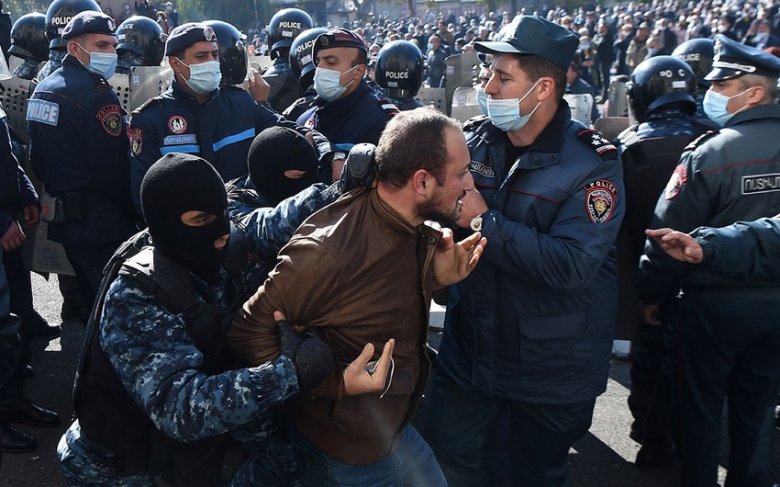 Ermənistanda azərbaycanlı deputatlara görə polislə etirazçılar arasında dava düşüb