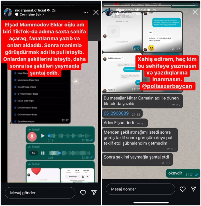 Nigarın sevənlərindən həm də şəkilini istəyən Elşad Məmmədov, daha sonra bu şəkilləri yaymaqla onları şantaj edib.