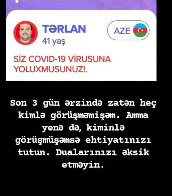 Tərlan testin nəticələrini də sosial şəbəkə hesabında paylaşıb.